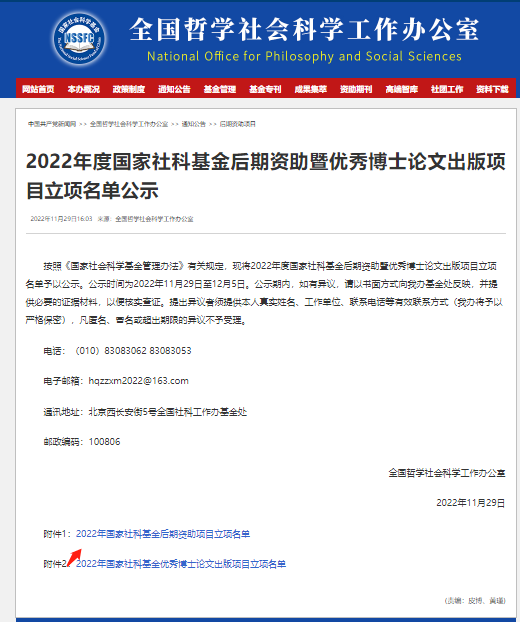 2022年11月29日下午,全国哲学社会科学工作办公室公示了2022年度国家社科基金后期资助暨优秀博士论文出版项目立项名单,我院李扬老师获得国家社科基金后期资助项目立项。立项信息如下:
