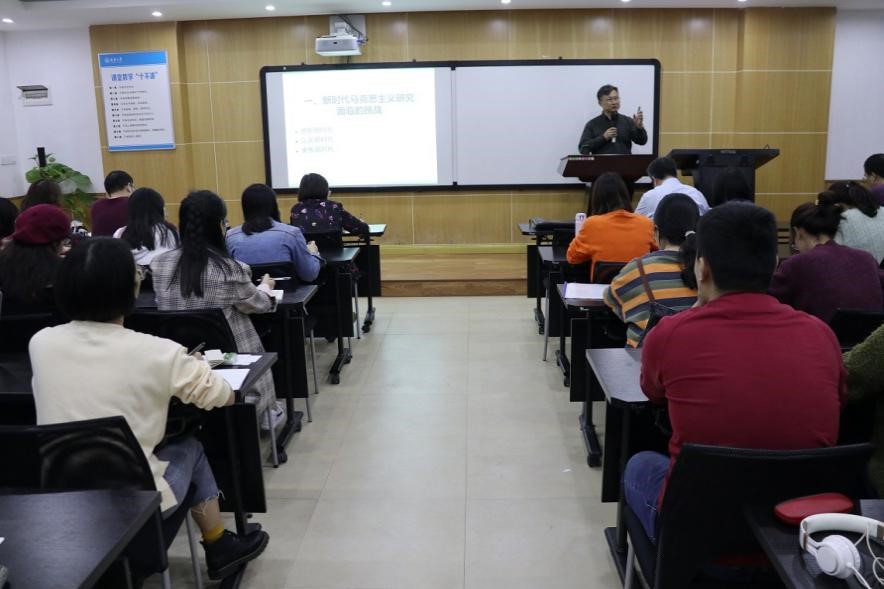 郝立新教授以“新时代马克思主义研究面临的挑战”为出发点,先后阐释了新时代的历史定位,明确了培养和造就时代新人的任务,强调了科学理论指导方向的重要性,并指出中国特色社会主义进入新时代,适逢机遇同时也挑战不断,需用科学理论武装头脑、武装人民。其次,他强调由于资本主义内在矛盾与社会主义的发展,当前存在着“百年未有之大变局”,需清醒认识、准确把握,并强调中国特色社会主义是科学社会主义的理论逻辑与中国社会发展的历史逻辑的统一,既有科学理论指导,也立足于中国实际。最后,郝立新教授从理论内涵与现实意义两方面系统论述了“如何理解中国理论、中国道路、中国精神”,并谈到应毫不动摇坚持中国道路、弘扬中国精神、凝聚中国力量,以实现中华民族伟大复兴的中国梦。