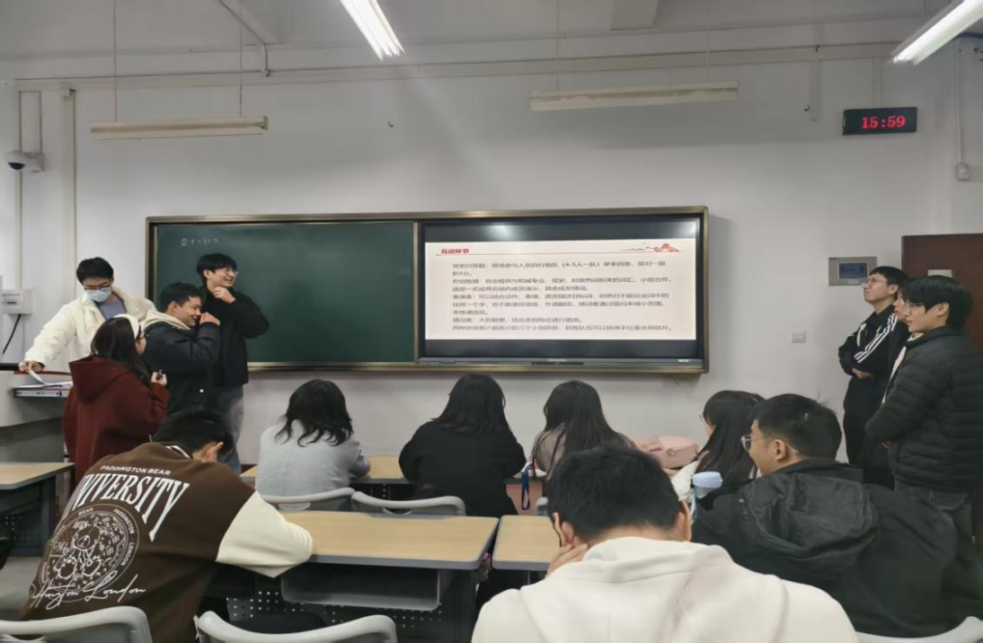 宣讲结束后,现场转入互动竞答环节。在“党史问答”中,同学们组队协作、踊跃抢答,激烈竞答中夯实党史知识;“你划我猜”则巧妙融合机械专业术语与党史热词,参与者通过肢体语言与精准描述传递信息,现场气氛热烈。最终,积分位列前三的小组获得奖励。